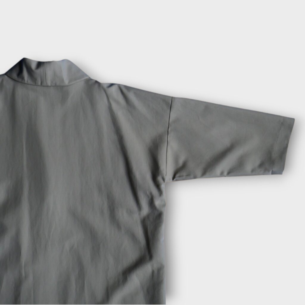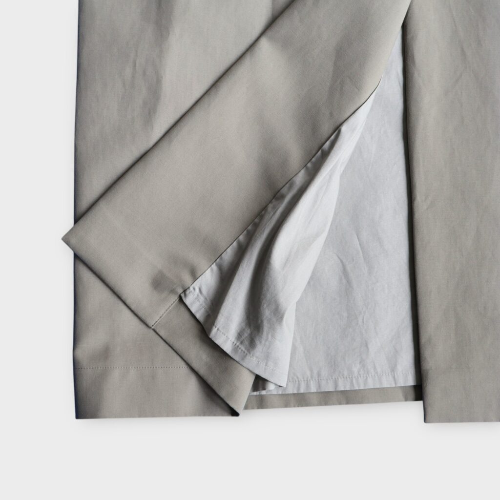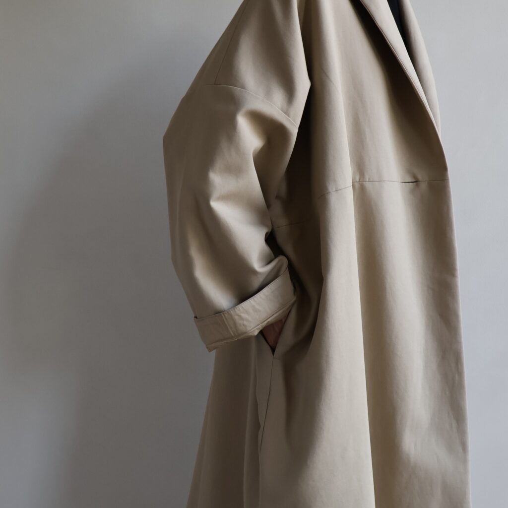 二重織りならではのふくらみと柔らかさがあり、しっかりとした厚みを持ちながらも重さを感じにくいのが特徴のコットンダブルクロス。動きに合わせて生まれる自然な落ち感と、ほんのりとした光沢が、シンプルなデザインに奥行きを添えてくれます。裏地にはコットンクロスを使用し、滑らかな着心地と保温性を確保。秋口から冬の寒さが深まる時期まで、安心して長く着られる素材です。