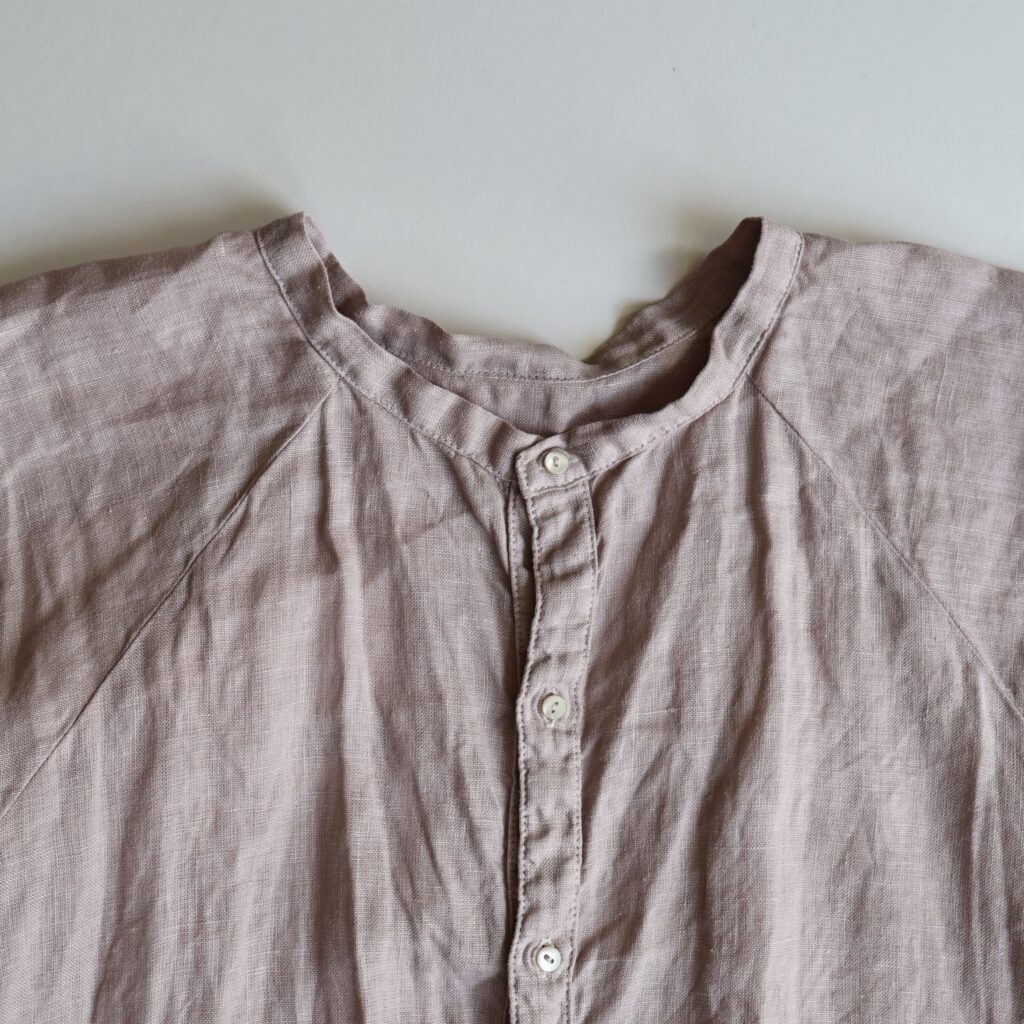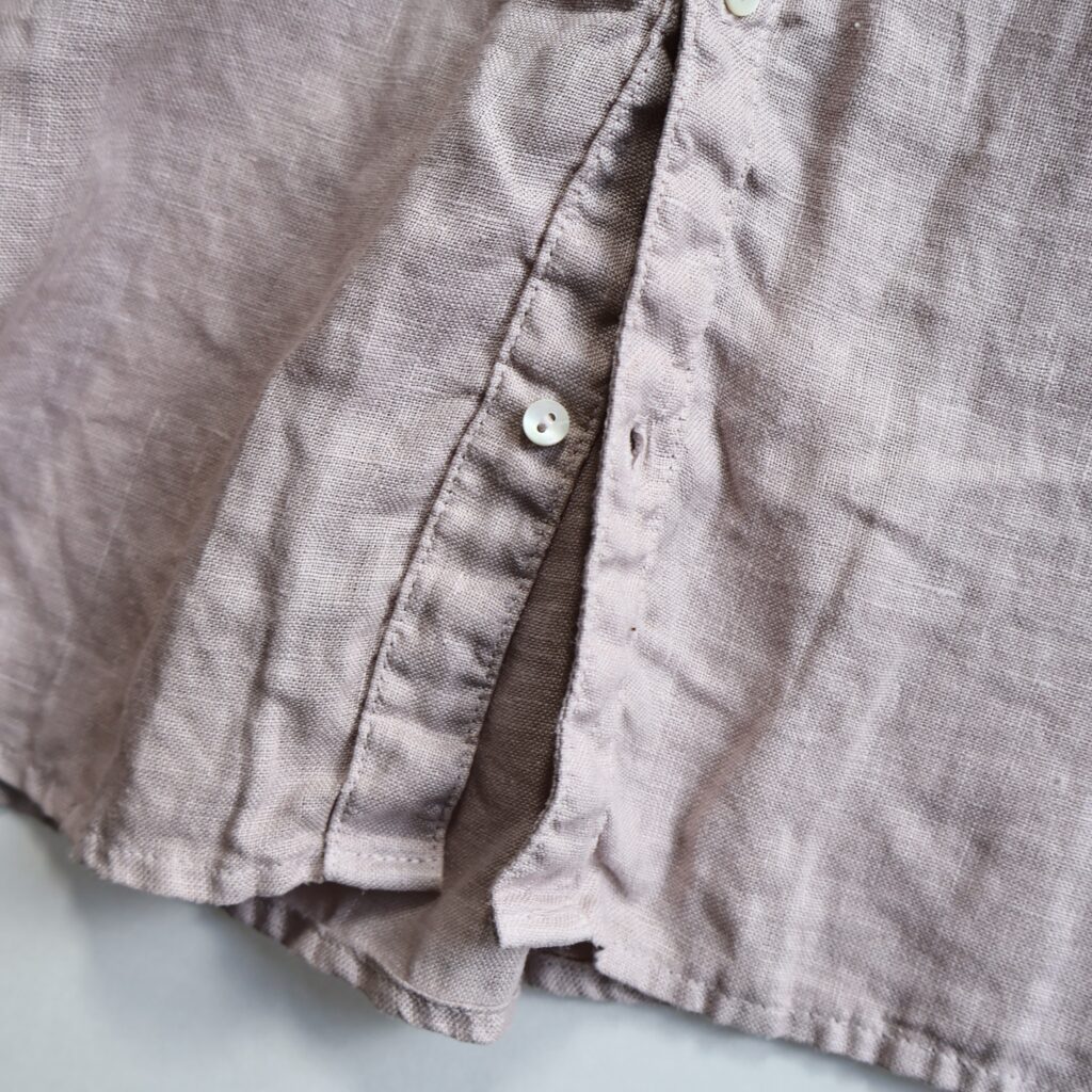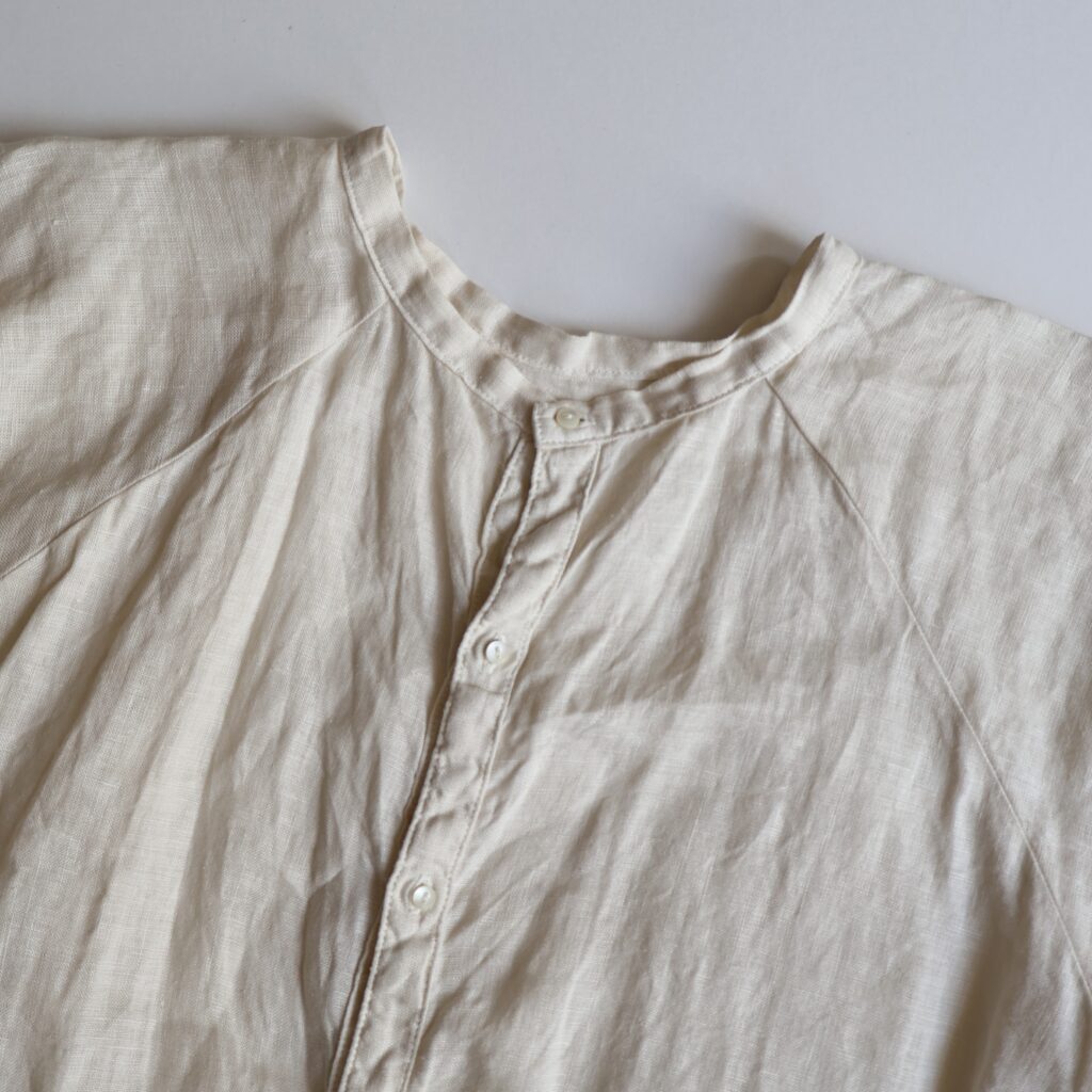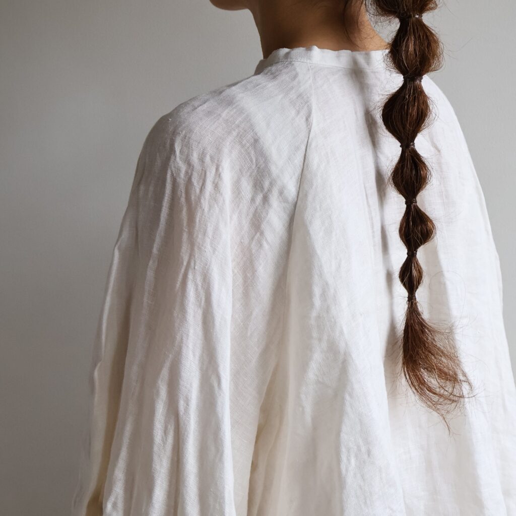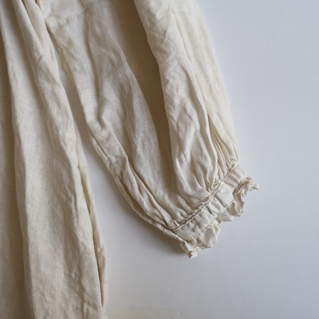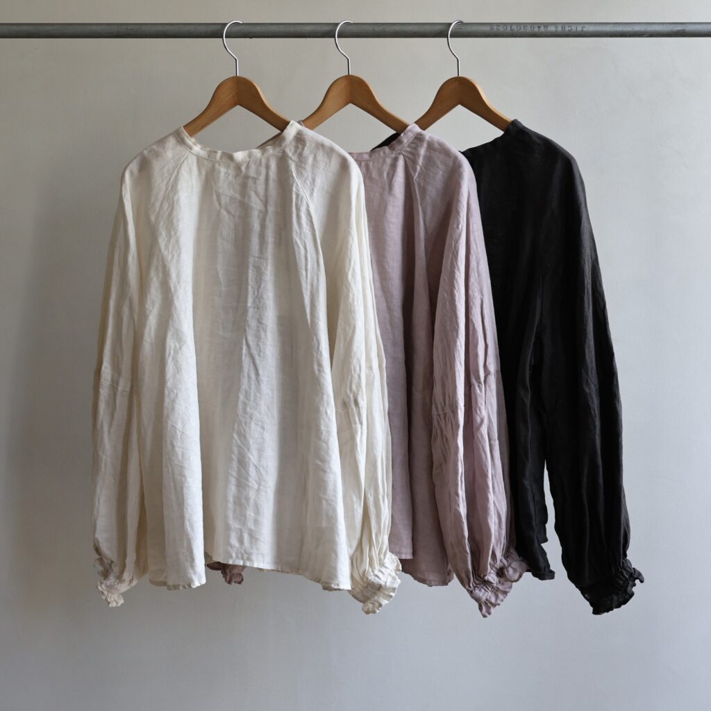 適度な厚みとハリのある上質なリネンを贅沢に使用したワンピースとブラウス。製品染めならではの深いアンティークのような風合いが魅力です。くたっとした風合いで肌触りがよく、着続けるほどにさらにやわらかく馴染んでいきます。